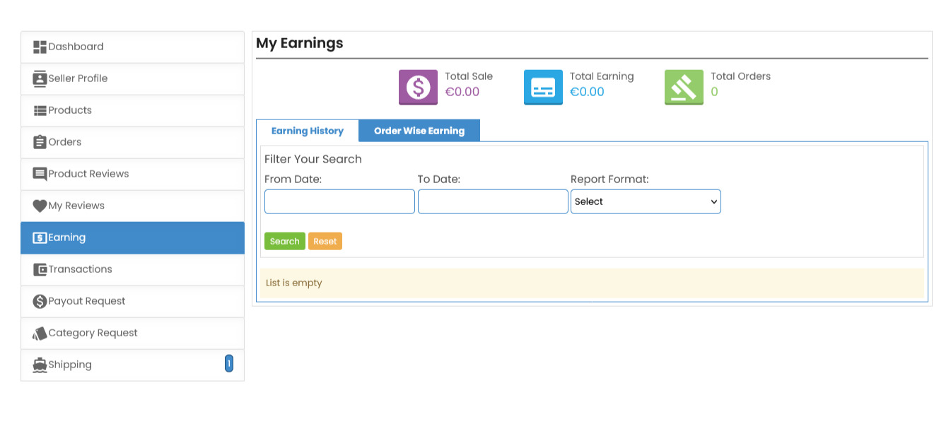 The My Earnings section provides an overview of your sales and earnings on the ComeMarket platform. This section helps you track your revenue and view earnings history in detail. Here’s how to navigate this section effectively:
