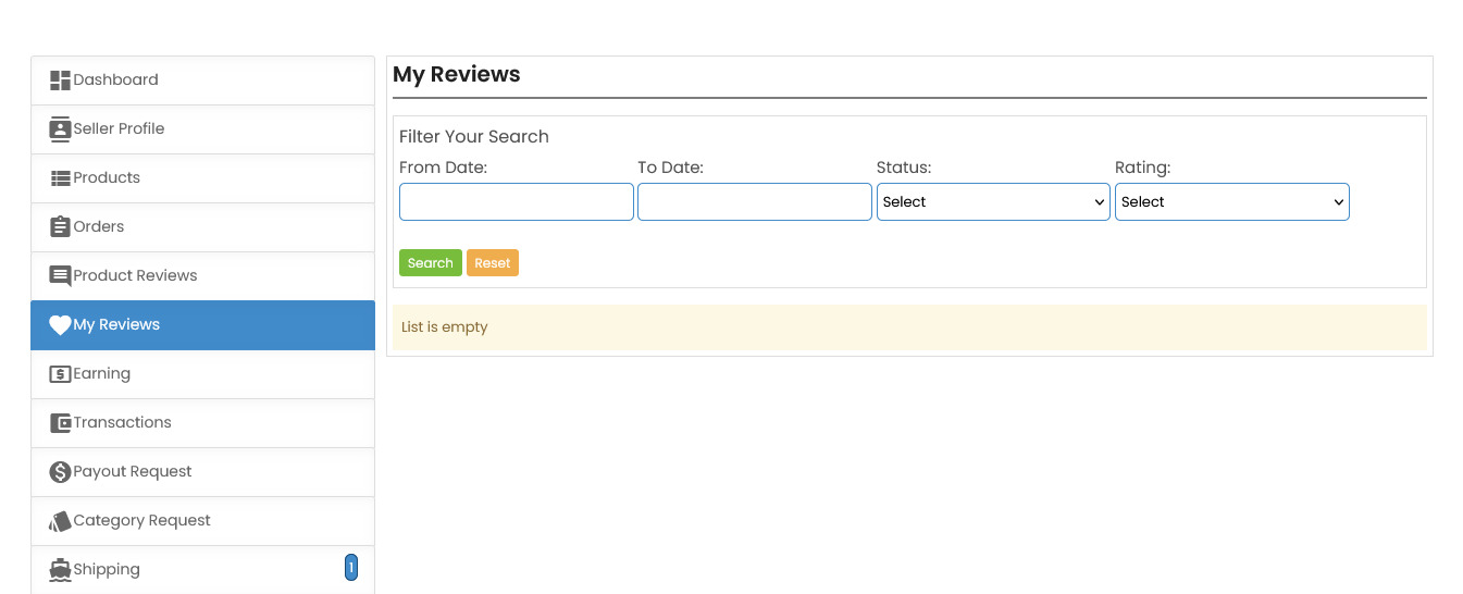 The My Reviews section in your Seller Dashboard allows you to view all feedback given by customers on your products. Monitoring your reviews helps you stay informed about customer satisfaction and respond proactively to any concerns. Here’s how to navigate this section: